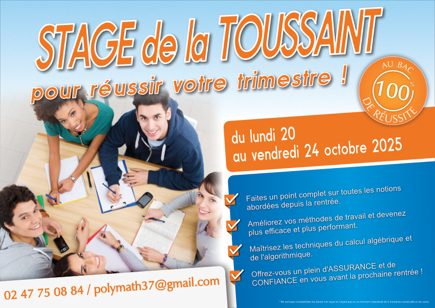 - 22 octobre au 27 octobre 2018 : Stage de la Toussaint à PolyMATH
